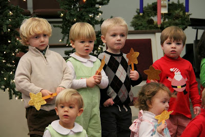 The boys school always does a cute Christmas program and brunch for the parents at the beginning of December. It was Henry's first year to participate and Jack's best buddy Reed was Joseph this year so it was a big deal to not miss it! J planned to come too, but since he had just had to miss work the because of the awful food poisoning I got he had to skip it. It was chaos trying to keep MK quiet during the program and wrangle 3 kids, find a highchair, and fix brunch plates from a buffet line with all 3! Thankfully since Sara Ann had some extra grandparent hands helped me with MK. I did manage to get a few pictures with my phone while holding Maggie Kate and thankfully Sara Ann got several since she was on the front row!